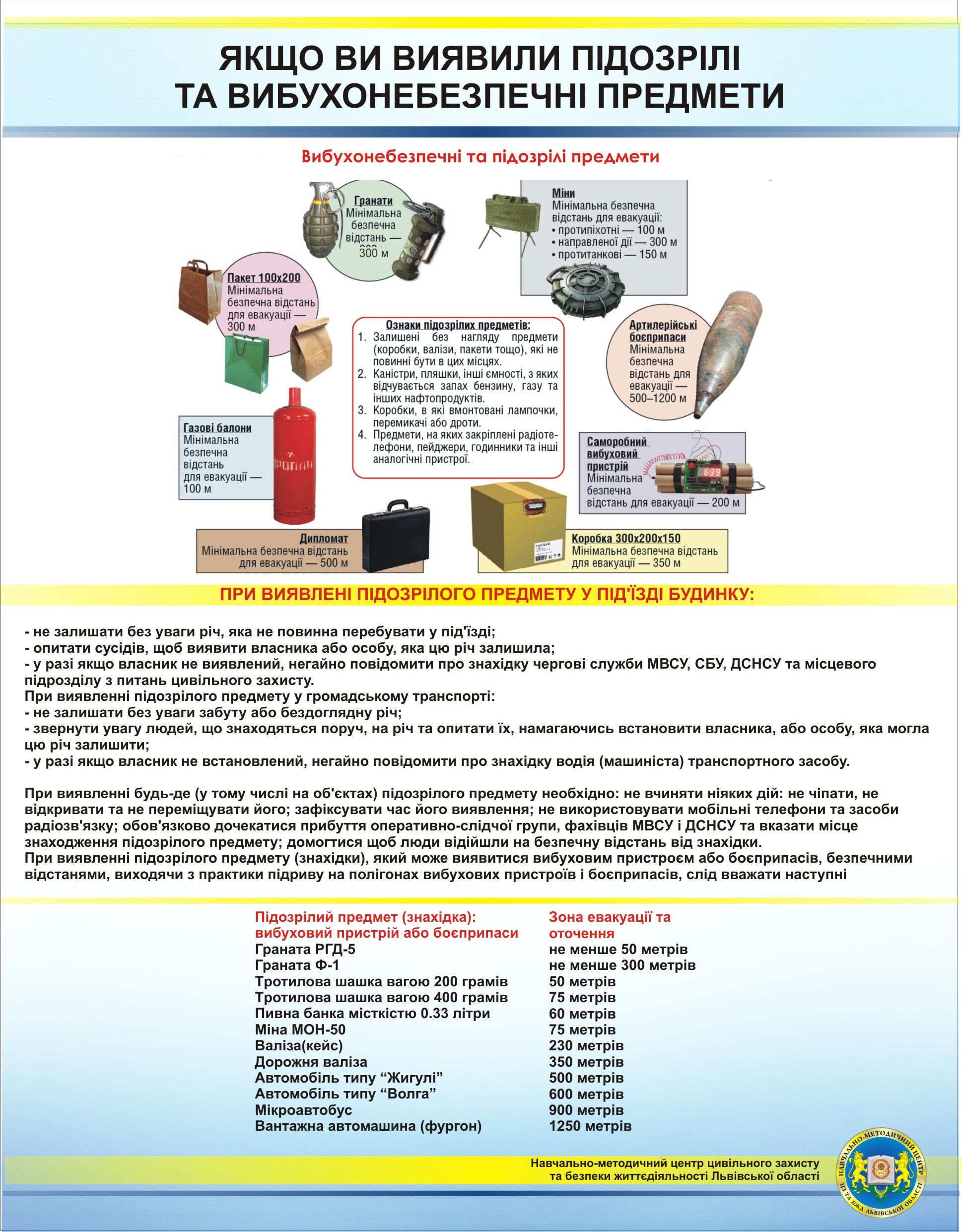 Дії населення при виявленні підозрілих або вибухонебезпечних предметів